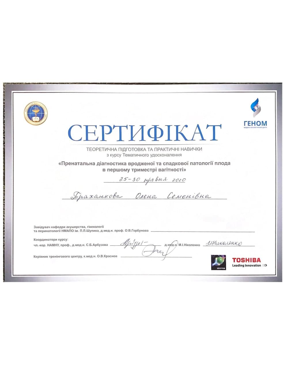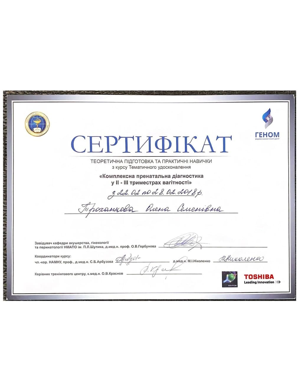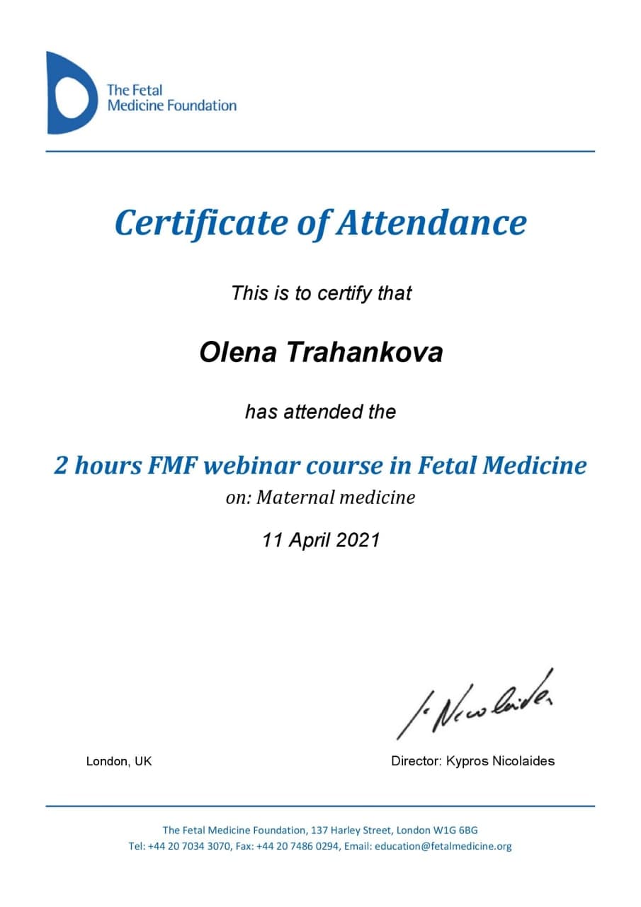 С 1996 года - Специализация ультразвуковая диагностика на базе Харьковской медицинской академии последипломного образования на кафедре клинической генетики и пренатальной диагностики.