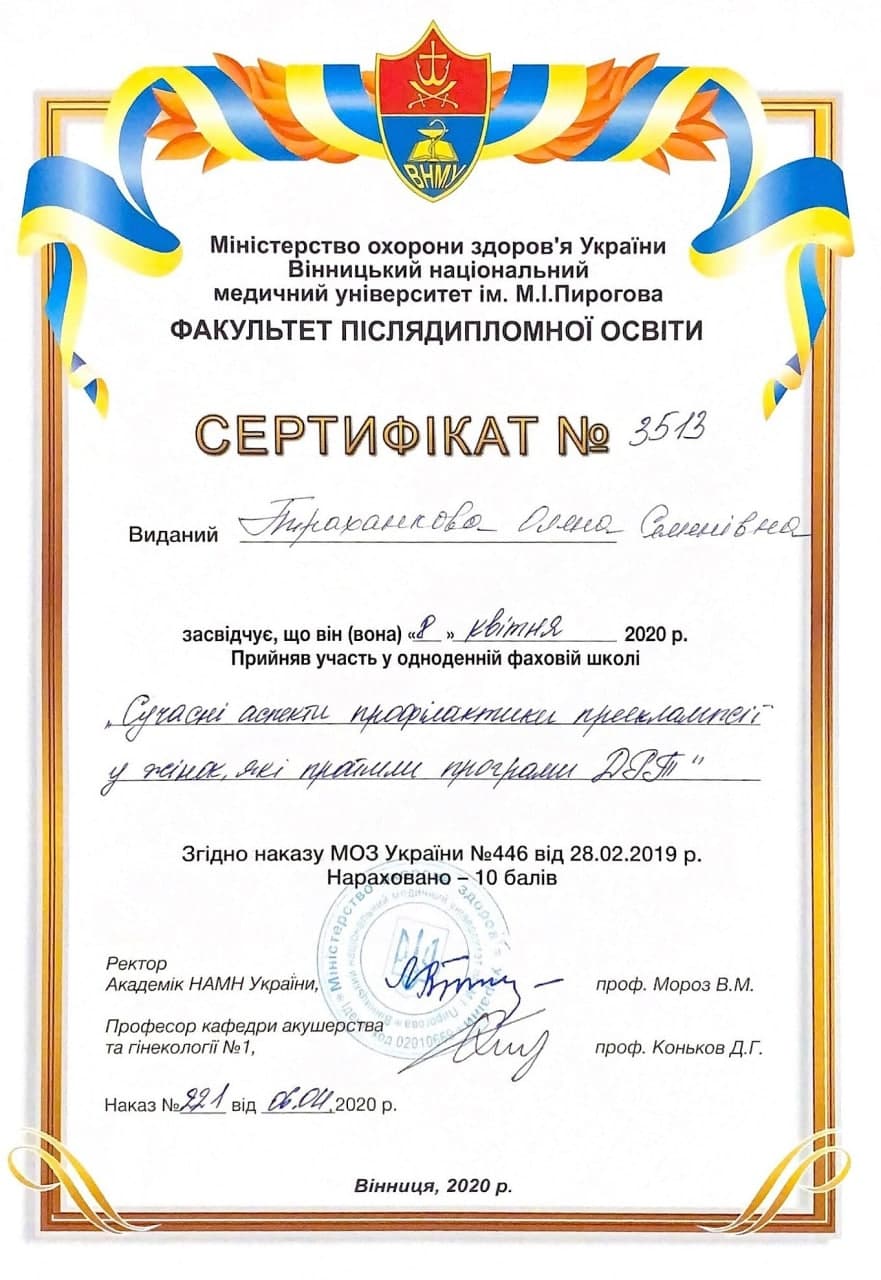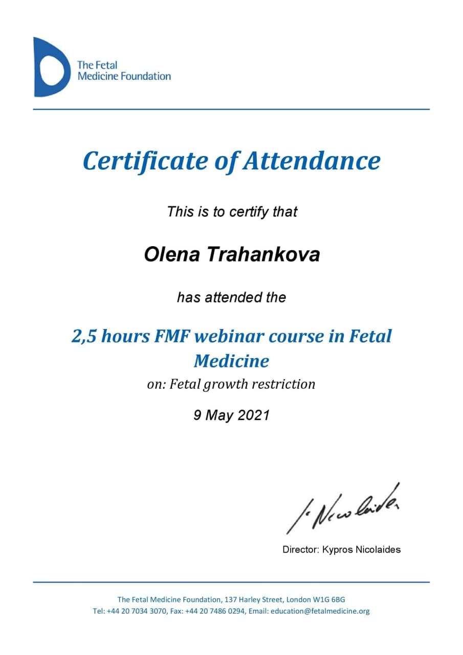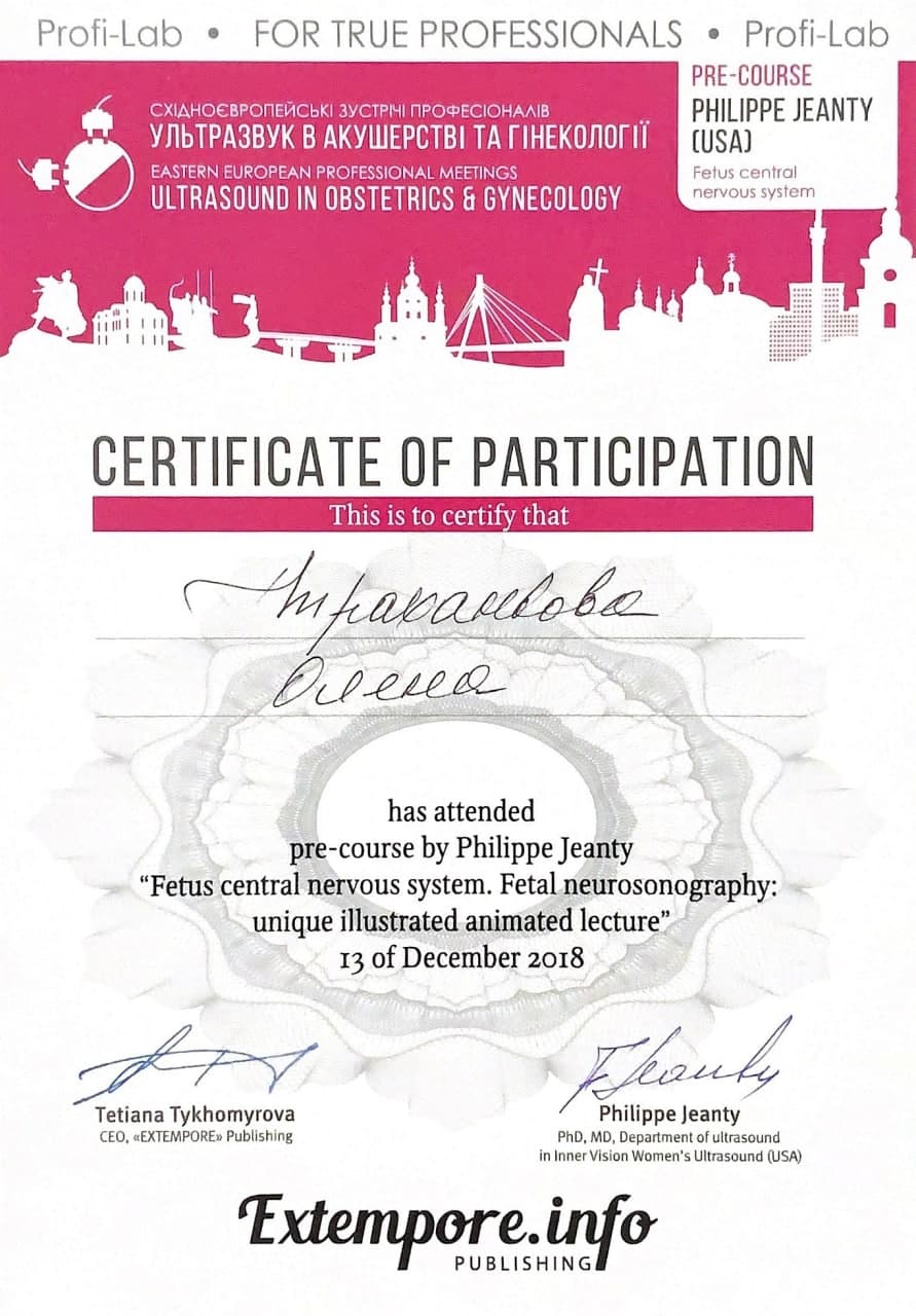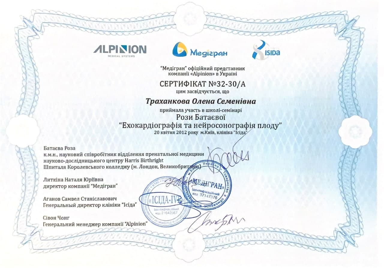 С 1996 года - Специализация ультразвуковая диагностика на базе Харьковской медицинской академии последипломного образования на кафедре клинической генетики и пренатальной диагностики.